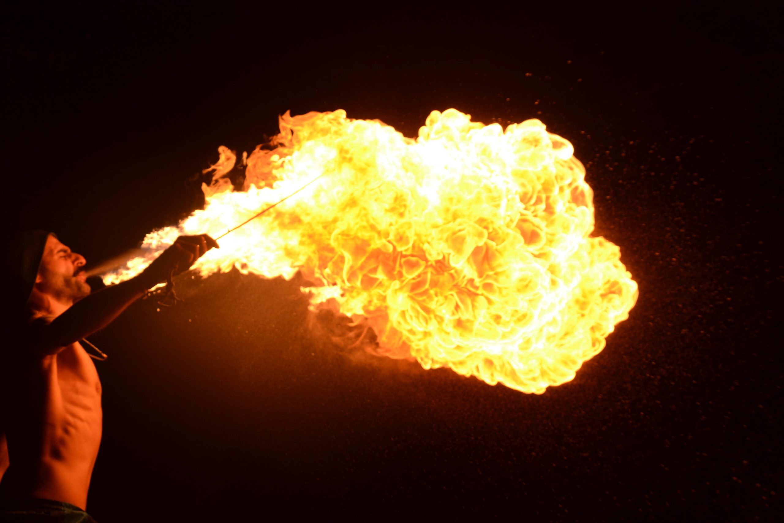 After having thought about the location, came the materials. Get some gasoline, make some torches, and bring in a firebreather!